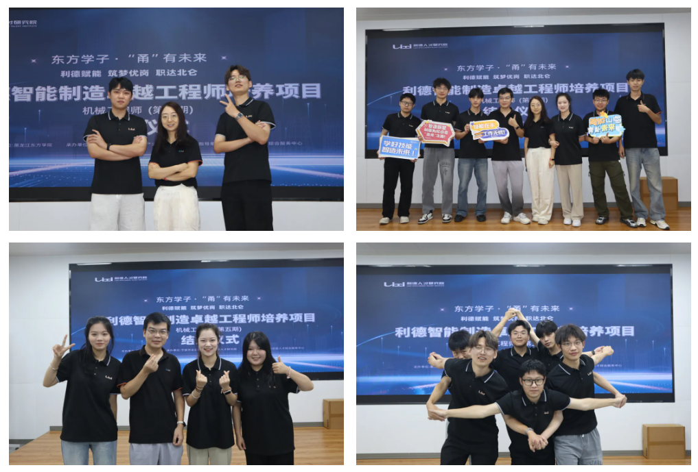 8月29日上午,利德智能制造卓越工程师培养项目第五期结业典礼在宁波(北仑)公共实训中心(利德智能制造实训基地)成功举办。来自黑龙江东方学院的近20名学子经过50天的系统实训,顺利完成学业。本项目聚焦智能制造领域机械工程师岗位胜任力提升,并积极对接优秀企业、推荐就业,有效打通从培养到就业的通道,为学生实现高质量对口就业奠定了坚实基础。