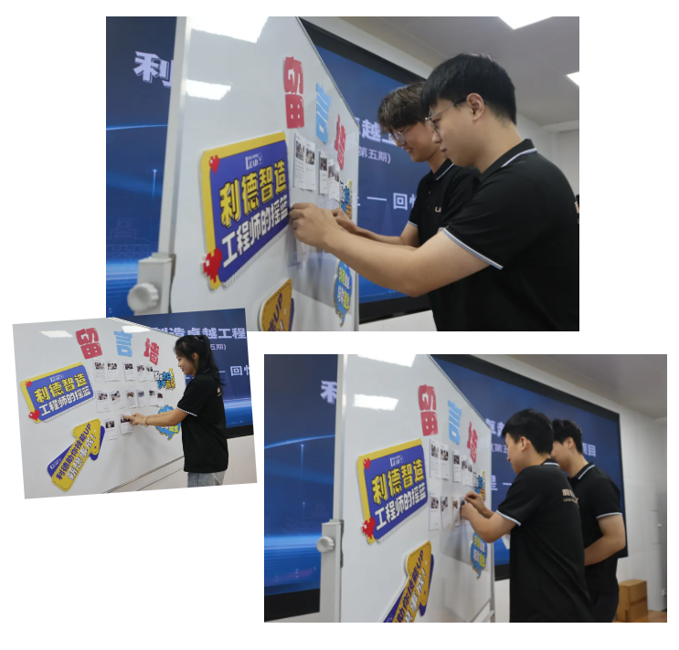 回忆留存 留言墙前,学员们认真写下实训期间的感悟、对利德的感谢和对未来的憧憬,并将一张张便利贴贴满墙面。这面充满温情的留言墙将永久保存在利德智能制造实训中心,激励后续学员砥砺前行。