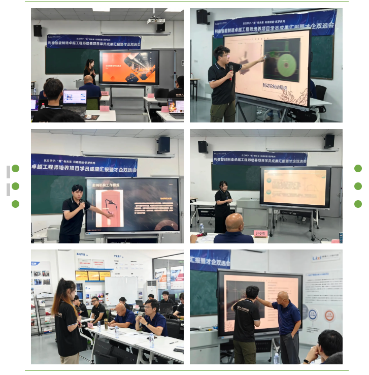 利德人才研究院技术主讲师卓立对学员们在项目期间的技术成长与职业素养提升给予了高度评价。他回顾了与学员们共同学习的点滴,为他们取得的进步感到欣慰,他鼓励学员们保持对技术、专业持续学习与探索精神,勇敢追逐梦想、创造未来。 对接 综合项目实践成果汇报展示 学员围绕真实工程项目分组进行成果汇报,各小组详细展示了项目中的分工与解决方案,并由利德工程师以企业标准对项目成果进行评审。通过实战项目,学员将专业知识深度融合于实际工作场景,持续对照企业标准、在工程师指导下不断优化成果。这一过程不仅提升了专业知识向实战应用的有效转化,更系统培养了学员解决复杂工程问题的思维能力。 企业参访 利德组织学员前往多家知名智能制造企业进行实地参观与交流。通过实地了解企业生产环境、工作流程和文化氛围,学员们进一步明确了职业方向,企业也与潜在人才建立了初步联系。
