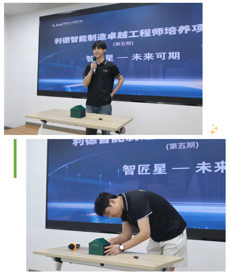 学生代表杨超分享了她的实训感悟。她衷心感谢利德导师们的悉心教导和同窗之间的互助共进。他回顾了从理论到实战、从生疏到熟练的成长历程,表示将牢记工匠精神,努力成为中国智造浪潮中的技术中坚。