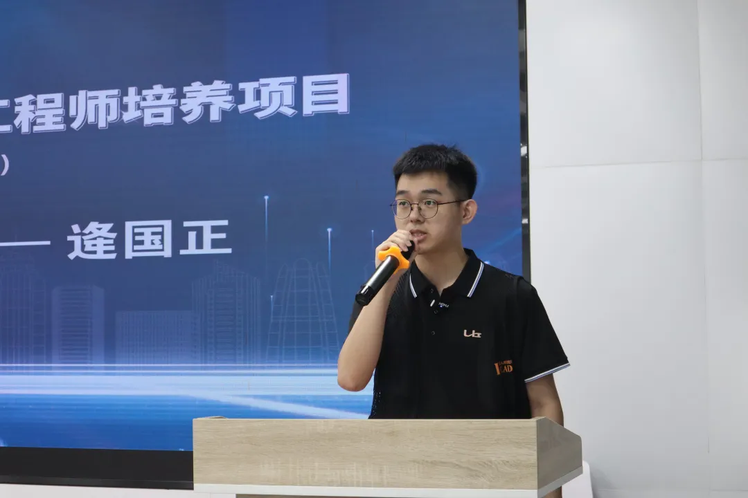 建筑电气与智能化专业的逄国正同学作为学生代表发言。他回顾了实训期间的成长与收获,表达了对利德实训基地与母校黑龙江东方学院的衷心感谢。他表示,将不负所学,以实际行动践行“蒙以养正,学以致用”的校训精神。
