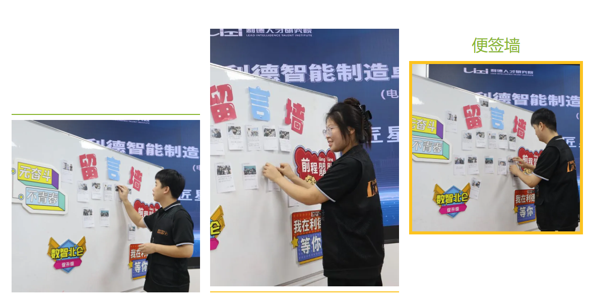 学员们还在留言墙上贴满了写满感悟与祝福的便利贴,内容涵盖对未来的憧憬、对师恩的感谢以及对同窗的情谊。这面留言墙将永久保存在利德智能制造实训中心,激励后续学员在技能提升的道路上坚定前行。
